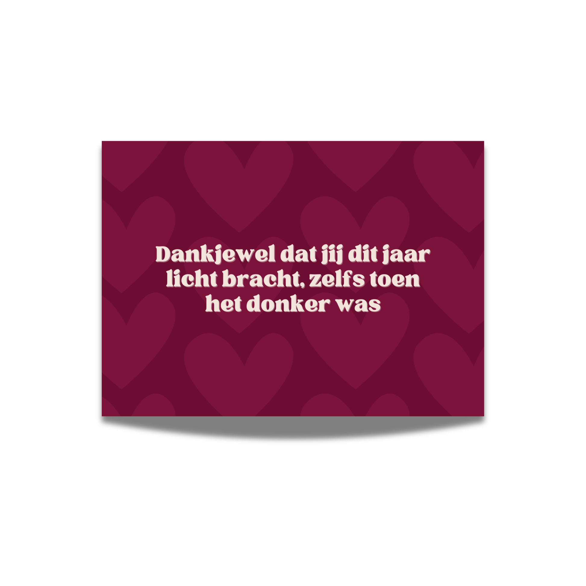 Een lieve en betekenisvolle kaart: “Dankjewel dat jij dit jaar licht bracht, zelfs toen het donker was.” Perfect om te sturen naar iemand die er voor je was: in goede én moeilijke tijden.