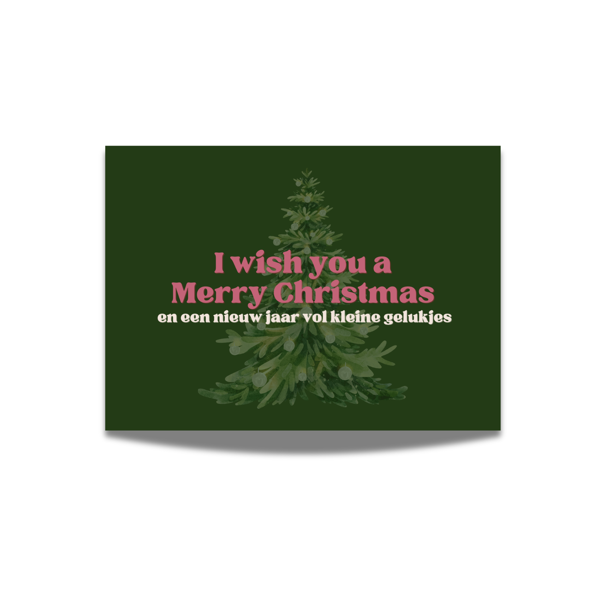 Een lieve en feestelijke kerstkaart: “I wish you a merry Christmas en een jaar vol kleine gelukjes.” Perfect om vrienden, familie of collega’s warme feestdagen te wensen en een nieuw jaar vol mooie momenten.